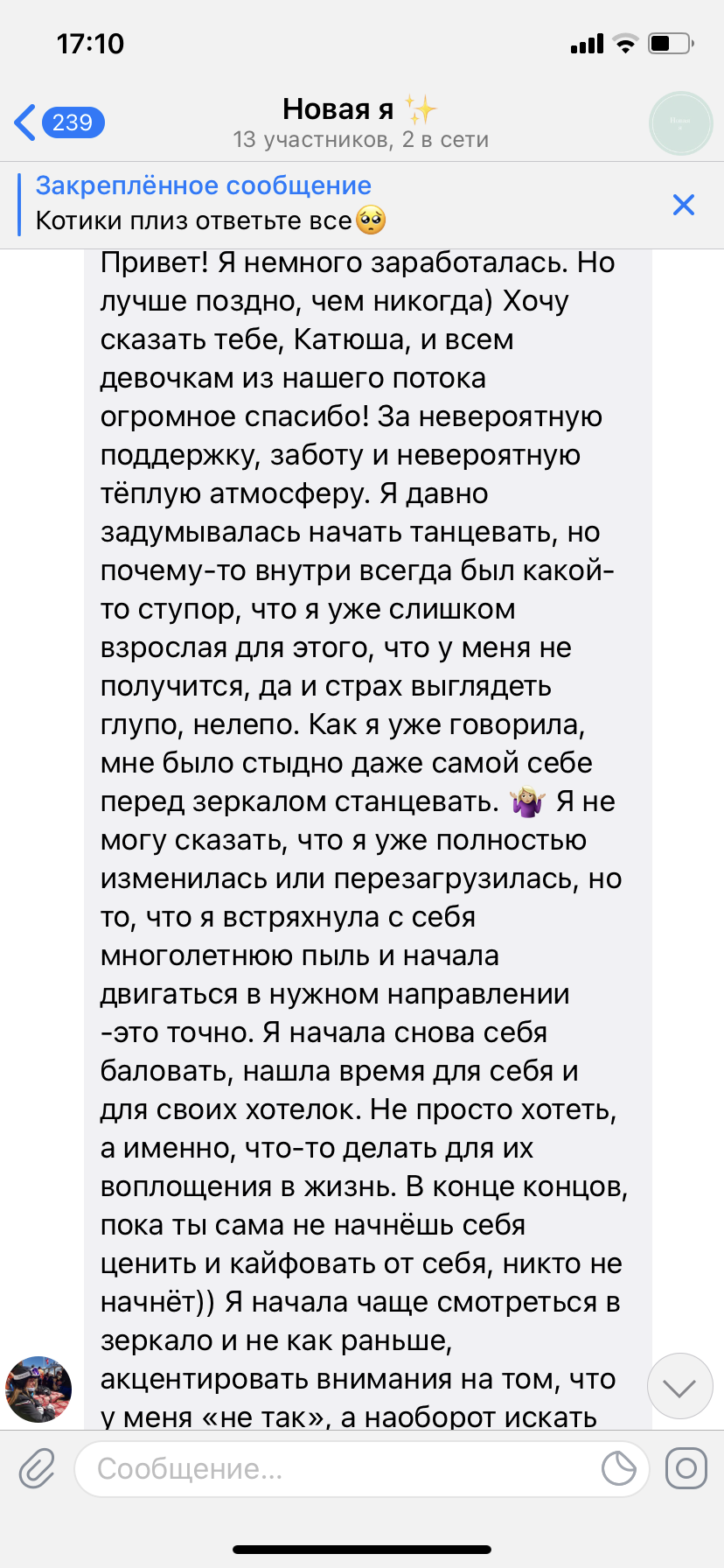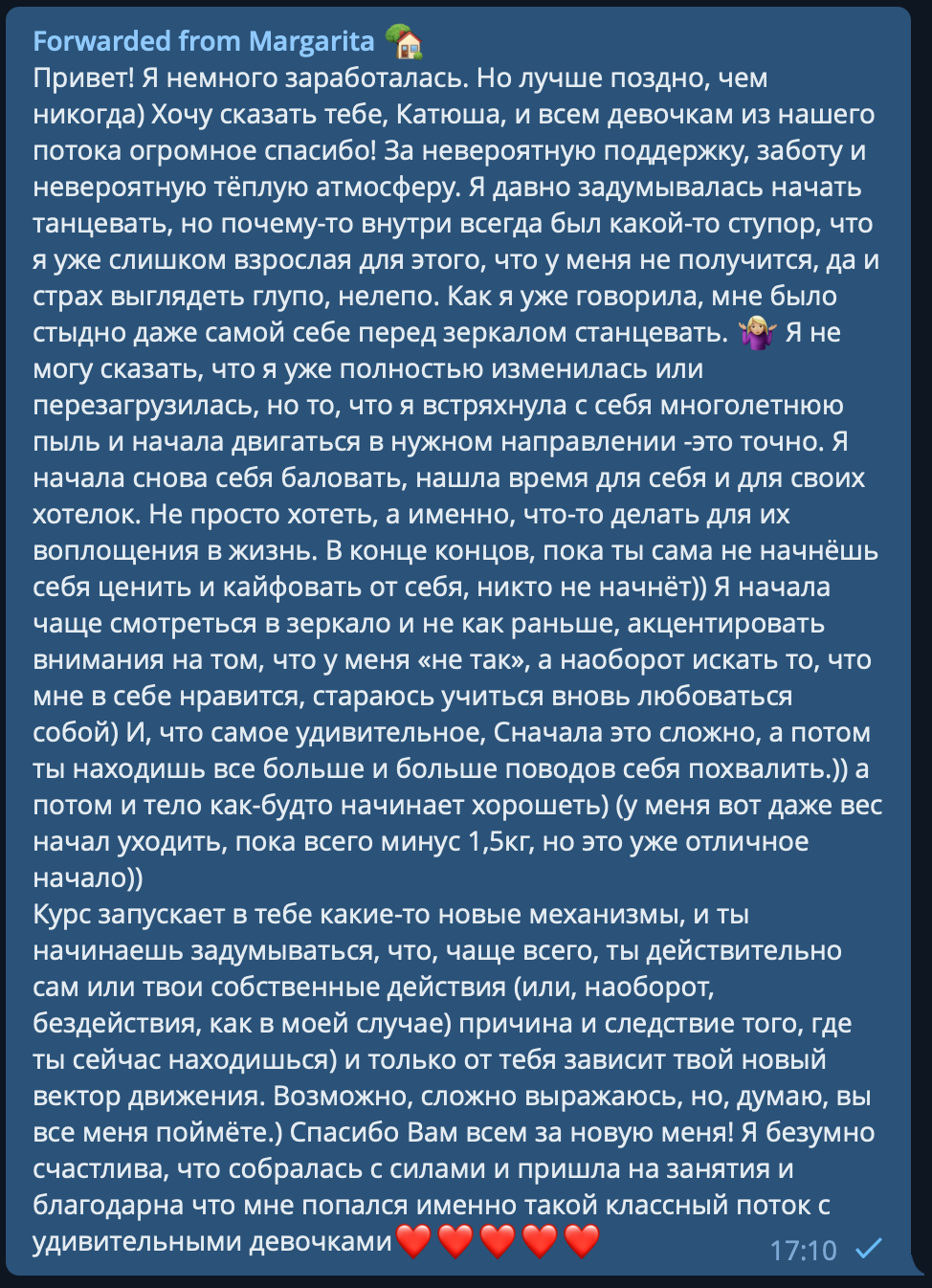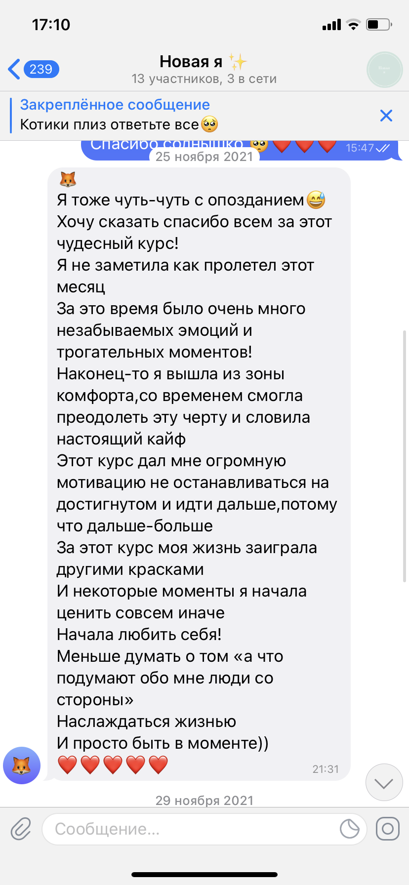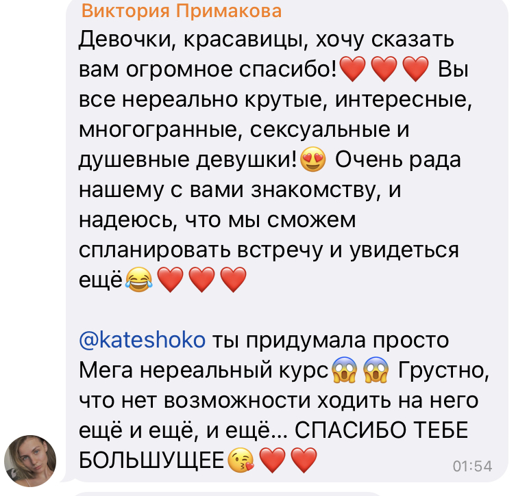 Я создала этот курс, что бы многие девушки могли через общение и поддержку, пережить тяжелые этапы своей жизни.